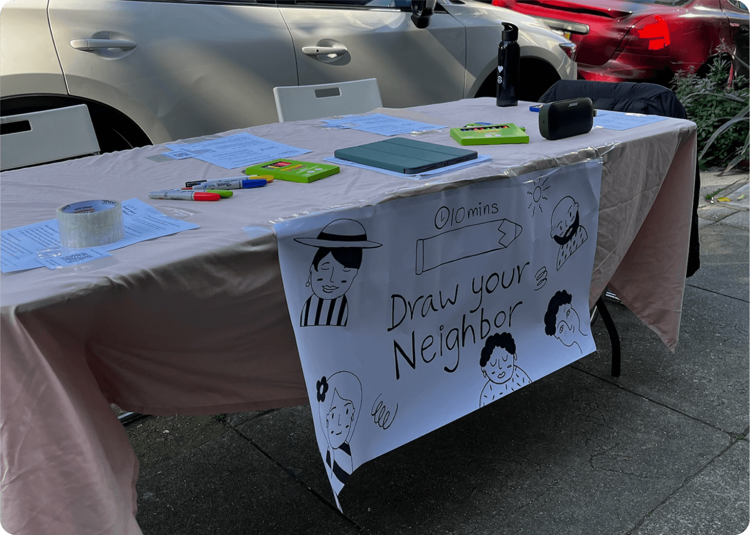 To bring Booth Buddy to life, we used it ourselves to generate an activity idea: “Draw Your Neighbor.” With no prior exhibitor experience, our team signed up for the Lower Haight Spring Art Walk and followed Booth Buddy’s guidance to set up a street booth.